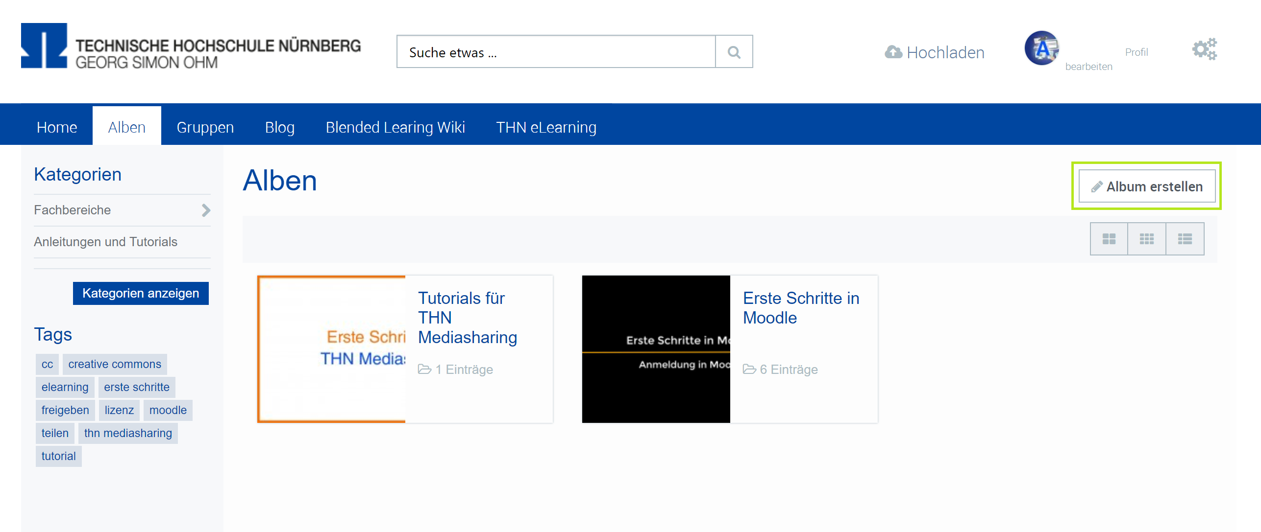 Um ein Album zu erstellen wählen Sie den Reiter Alben und anschließen den Button Album erstellen.