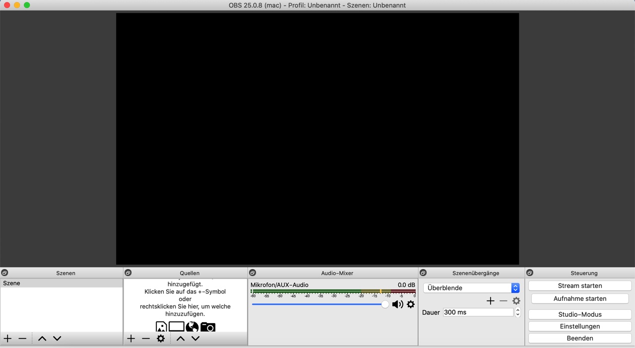 Nach Rückkehr in OBS ist zunächst nur ein schwarzer Bildschirm zu sehen.