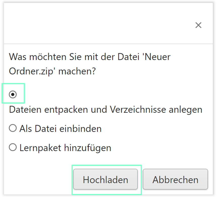 Dateien entpacken und Verzeichnisse anlegenaus und klicken Sie dann auf den ButtonHochladen.