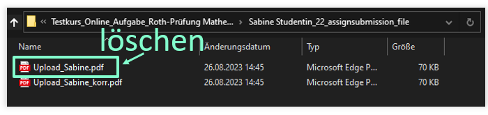 - Die Abgabe-Datei(en) jedes Prüfungsteilnehmers befindet sich nun in einem Unterordner.