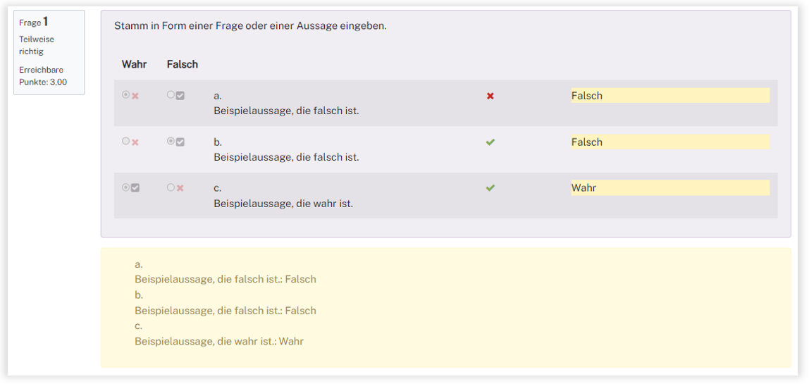 Studierende müssen pro Antwortalternative aktiv eine Wahl treffen, ob die Antwortalternative wahr oder falsch ist.