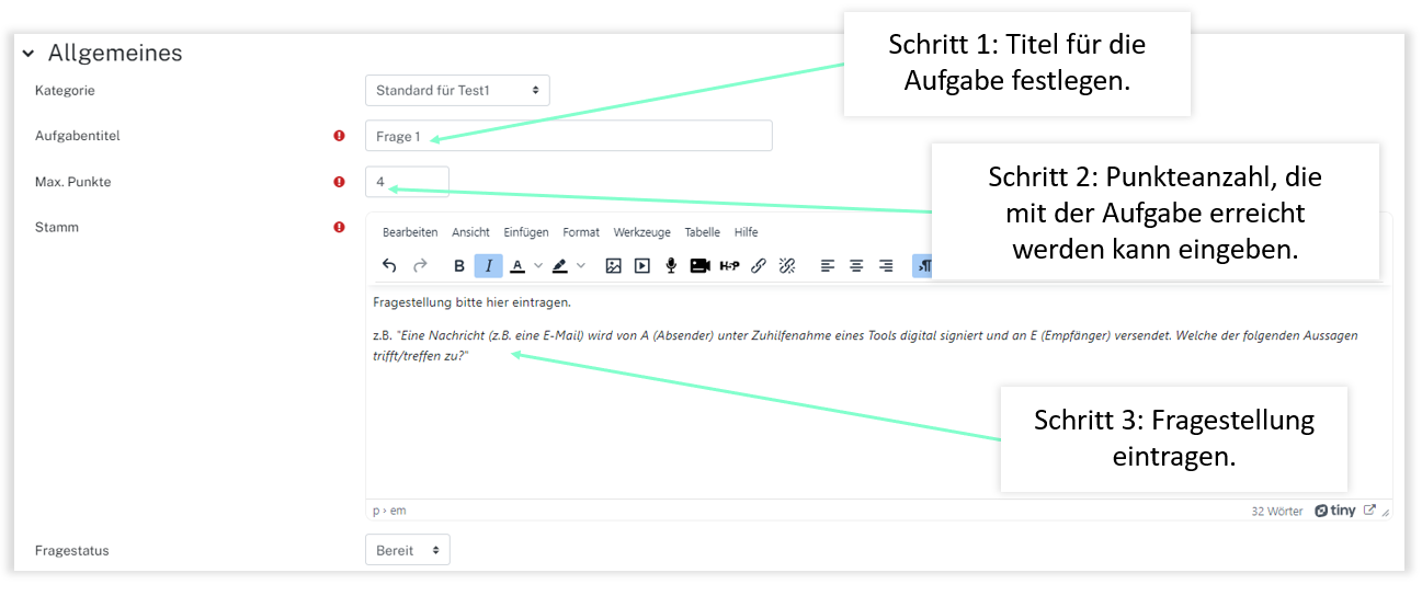 Hinzufügen eines Mehrfach Wahr/Falsch Fragetyp (MTF(ETH))