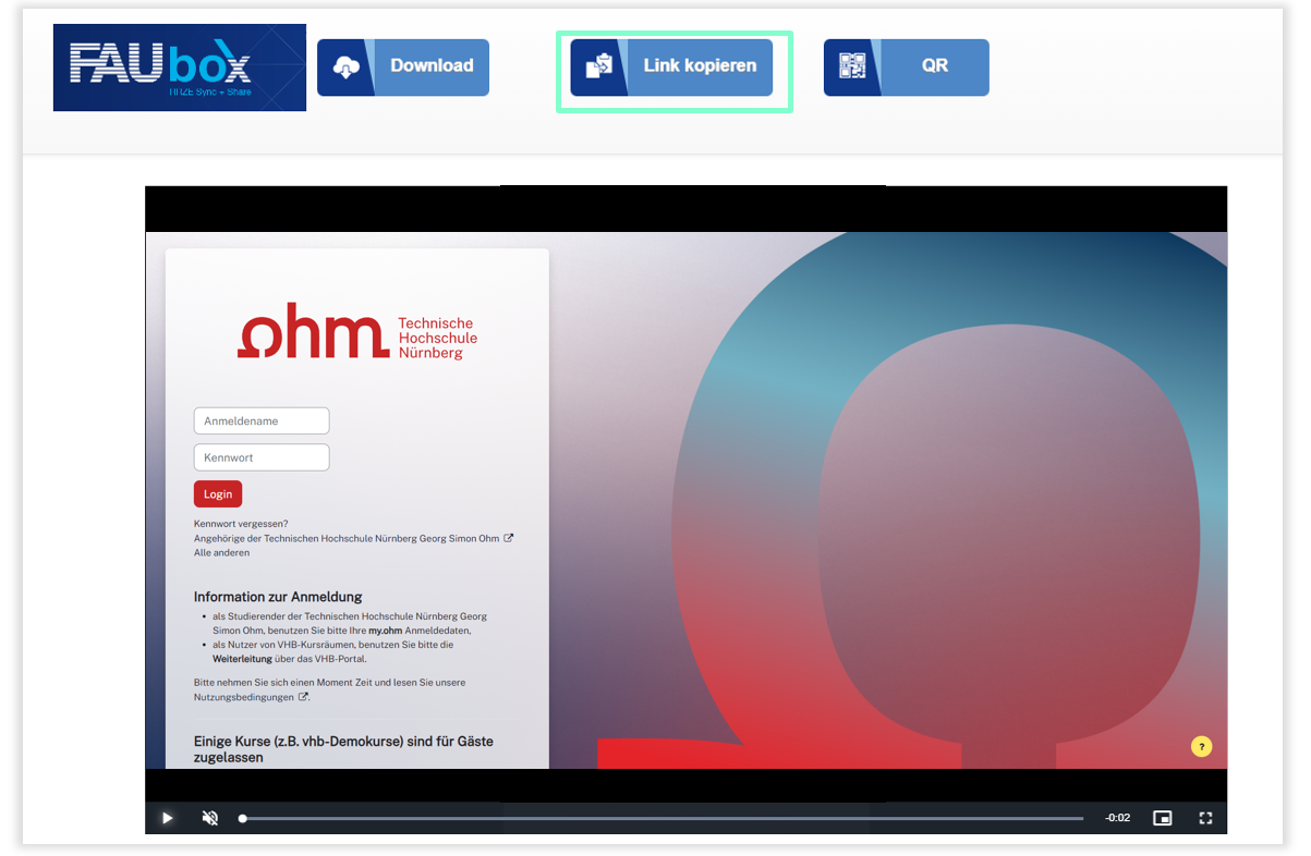 - Laden Sie das Video zunächst in der FAUbox hoch