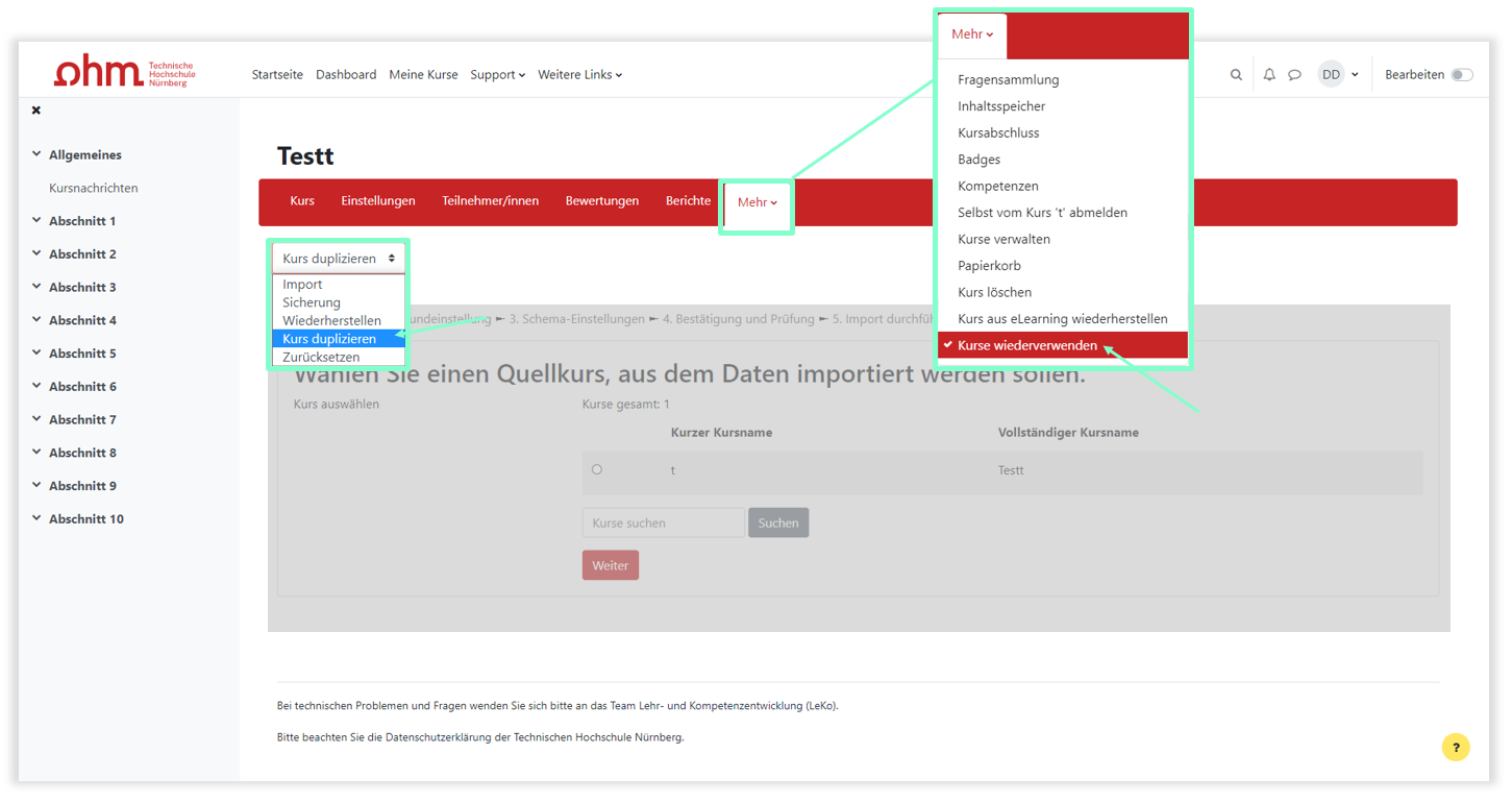 Mehrund wählen im Dropdown-MenüKurs wiederverwendenaus. - Es öffnet sich automatisch das Formular zum