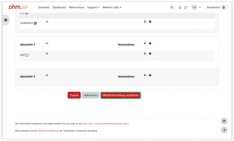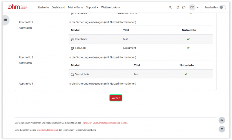 - … Elemente/Bereiche in Ihrem Kurs von den Nutzern erstellt wurden (Wiki/Gloassar) und Sie diese Nutzerdaten auch nach dem Umzug beibehalten möchten.
